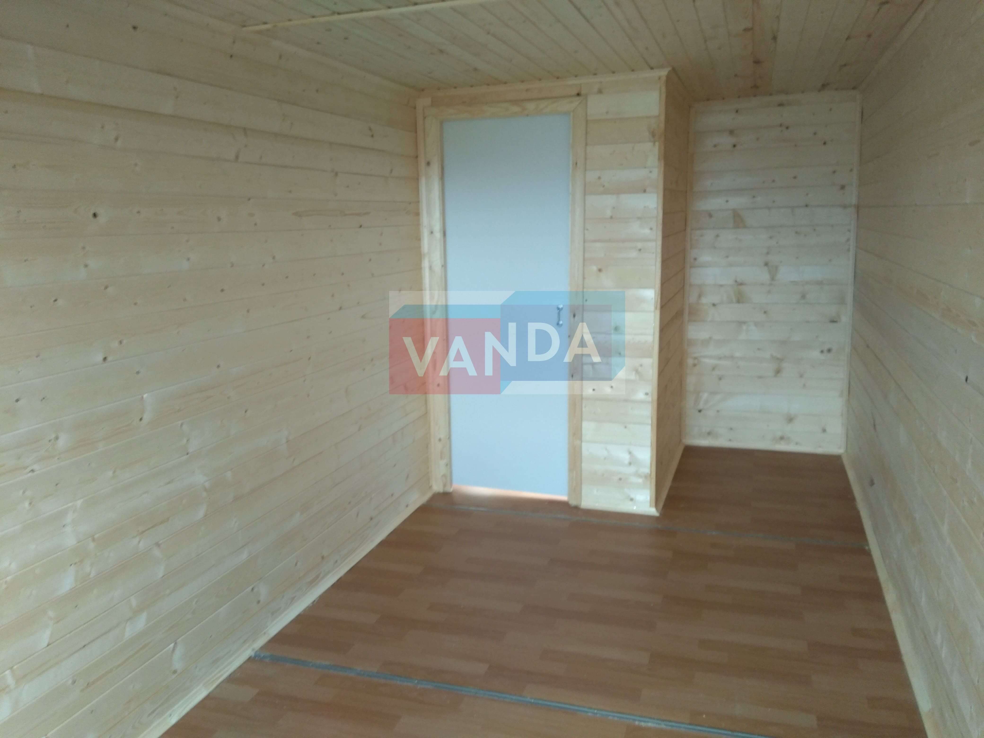 Металлическая бытовка с кухней в тамбуре 5,85 x 2,4 - Вагонка деревянная
