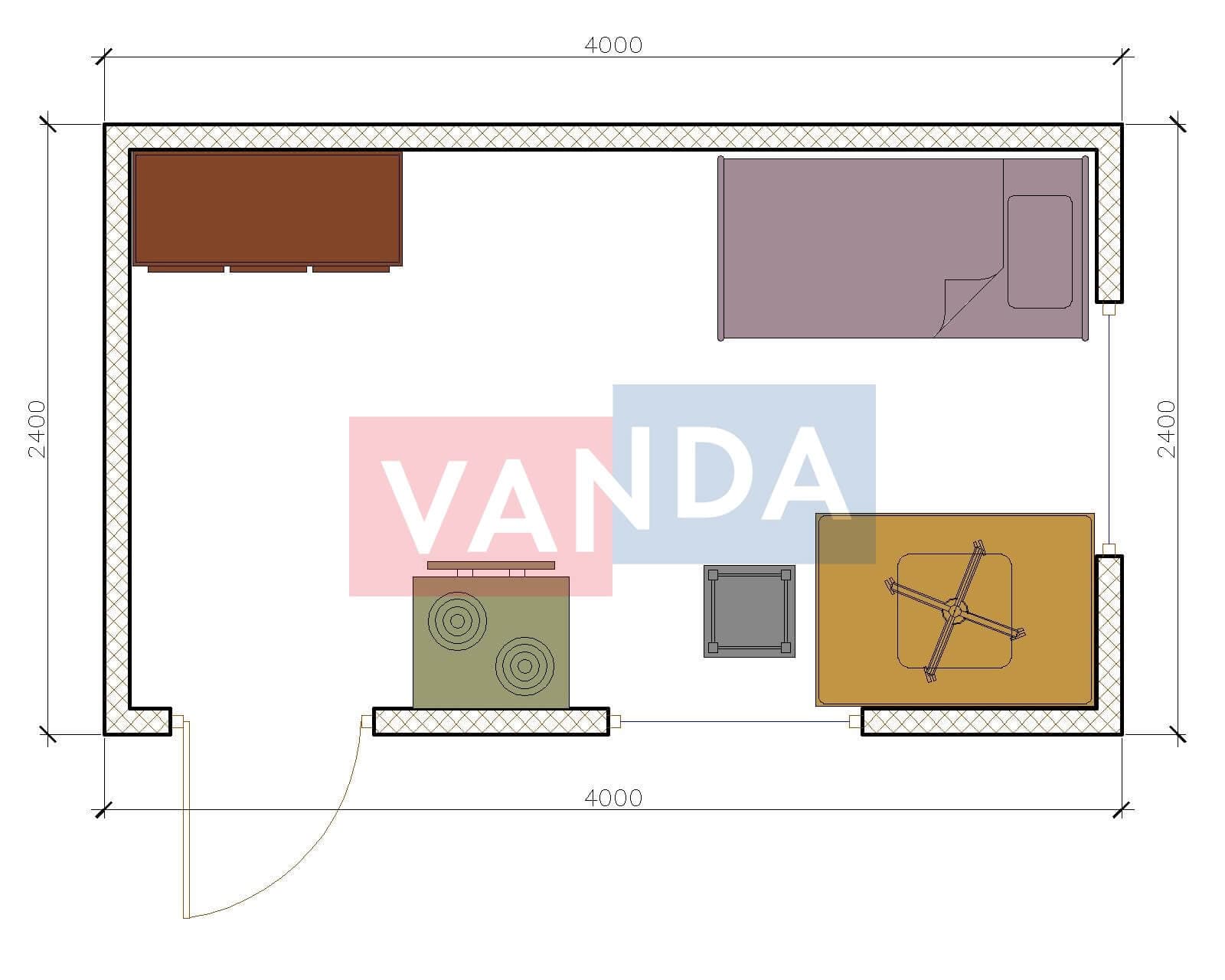 Металлическая бытовка без тамбура 5,85 x 2,4 - Оргалит ДВП